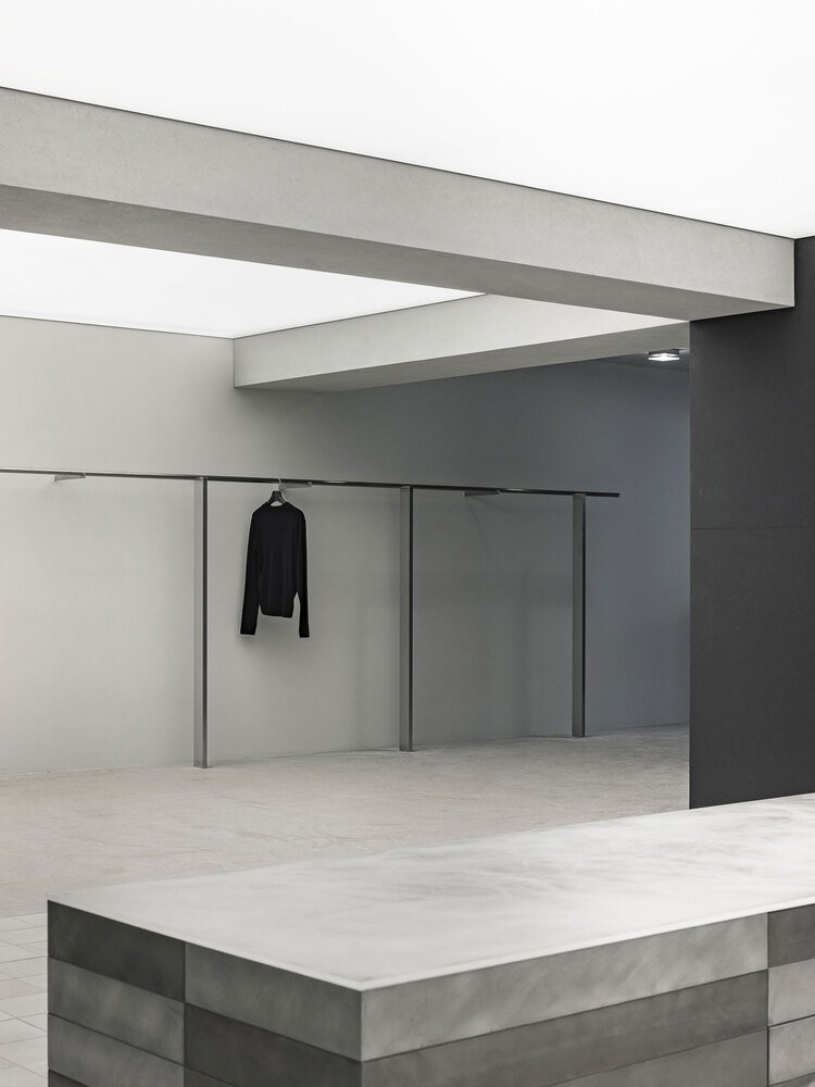 The store's structure was designed to express not only circulation and function but also the form of LMOOD's brand philosophy.