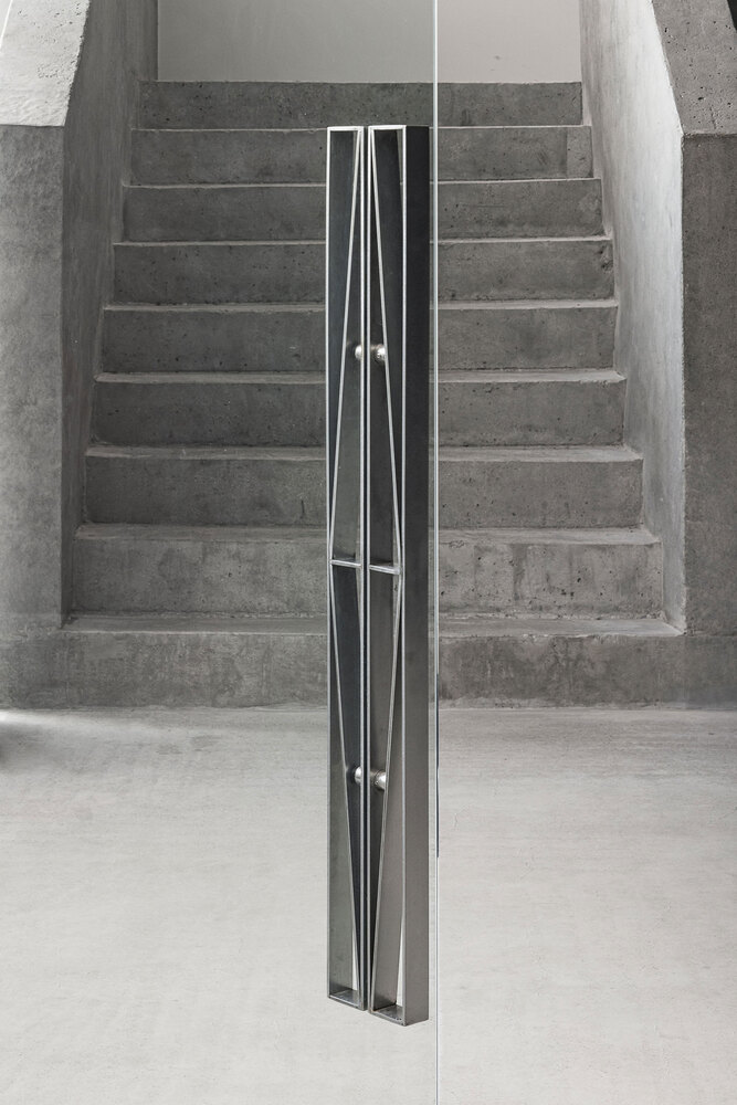 The composition is anchored by three primary architectural gestures: the staircase, the black mass, and the acrylic wall. Together, these elements embody both solidity and clarity, demonstrating the material and emotional strength of the brand.