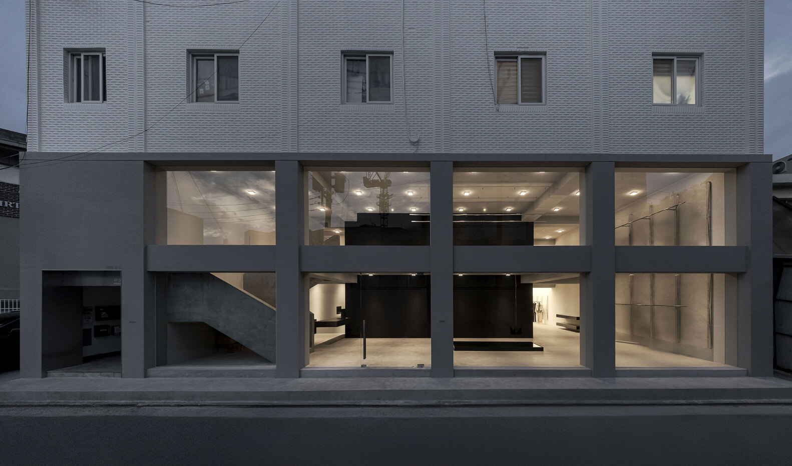 Seen from the street, the composition becomes a quiet statement of identity—a transparent yet solid form that reveals the spatial essence of LMOOD's philosophy.