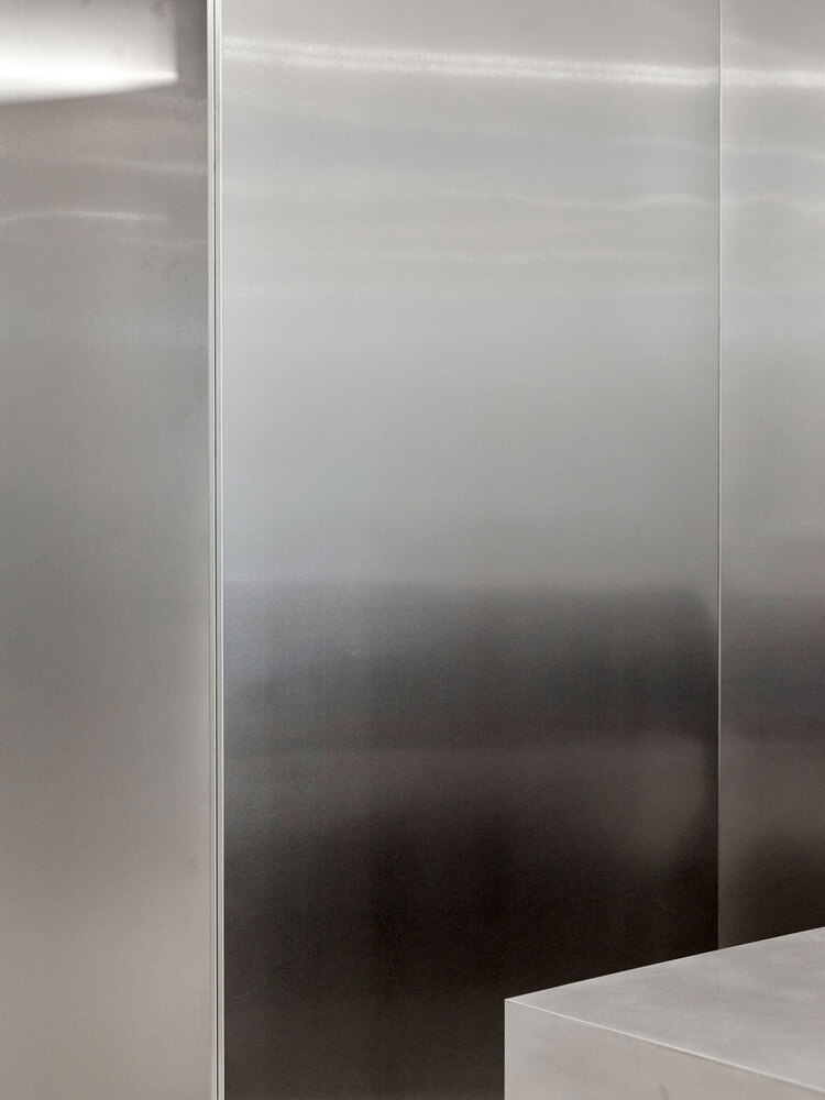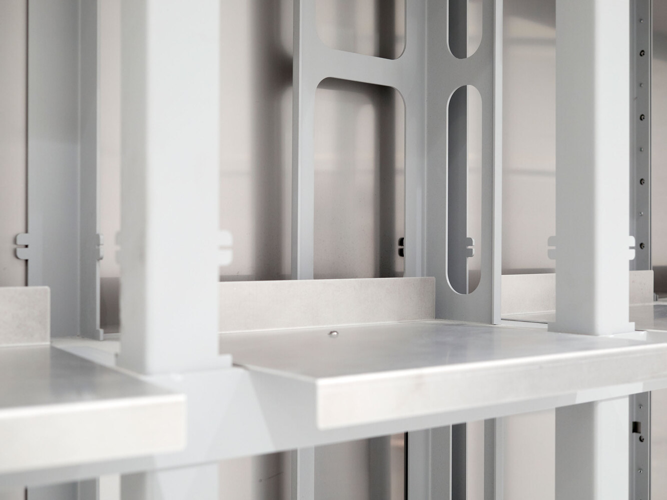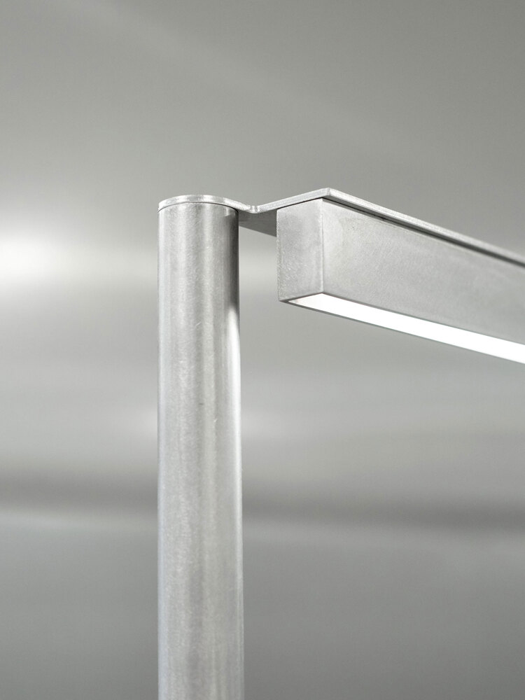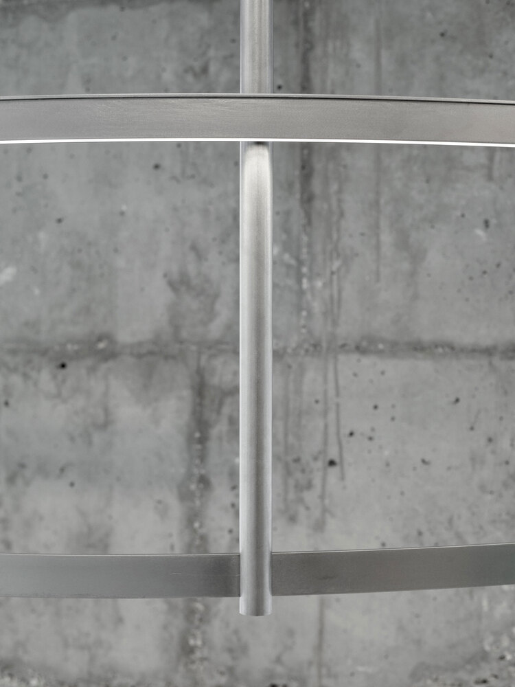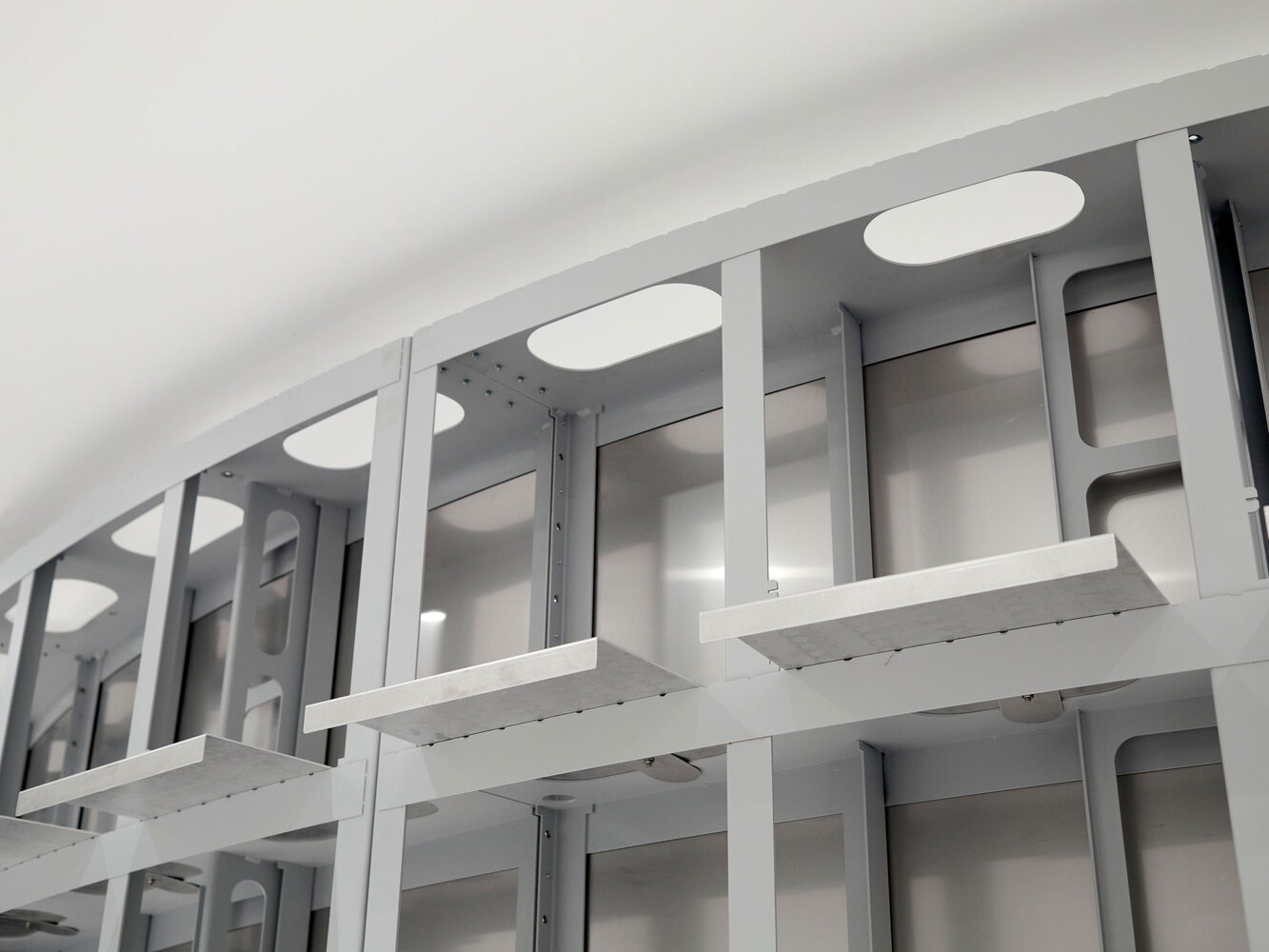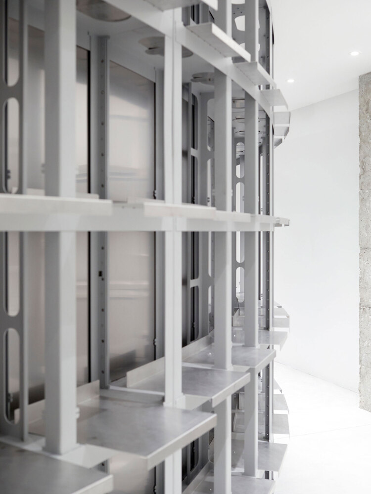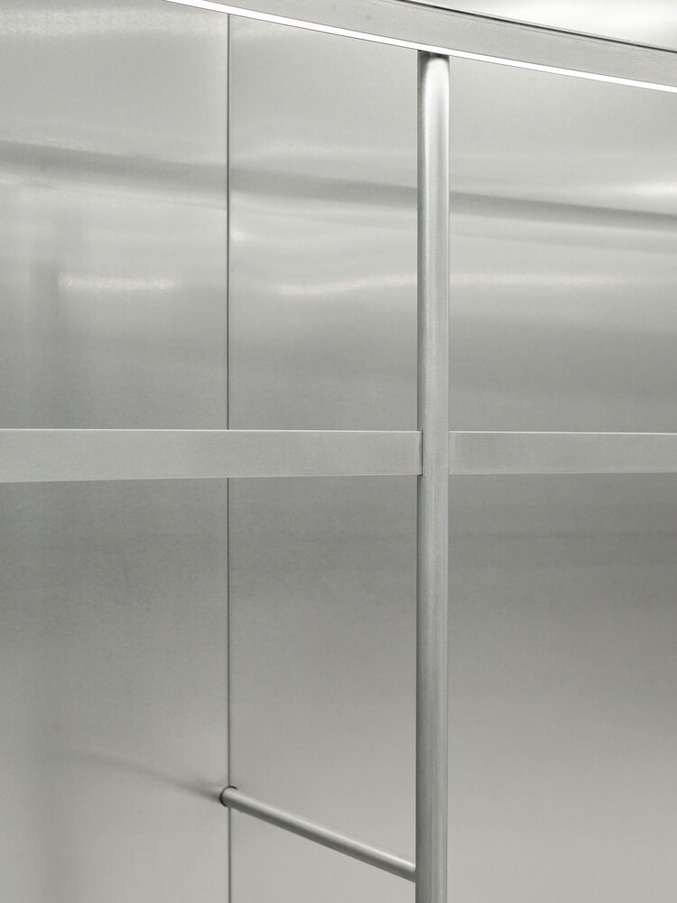 A technological mix of a material logic from the automotive industry - what is bent is stable - and the use of materials based on aircraft construction - generally as little material as possible - is the basis for defining the space in a material-efficient and cost-effective way.