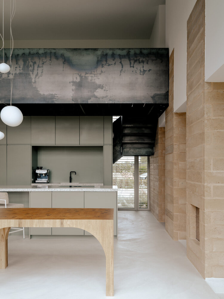 This idea is reflected both in the house's vertical layering and in the horizontal organization of its interior spaces.