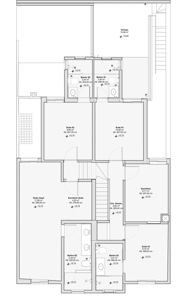The initial diagnosis revealed a fragmented configuration, with compartments lacking a clear purpose, underutilized areas, and a staircase adapted to reach the upper floor, highlighting the lack of continuity between the parts.