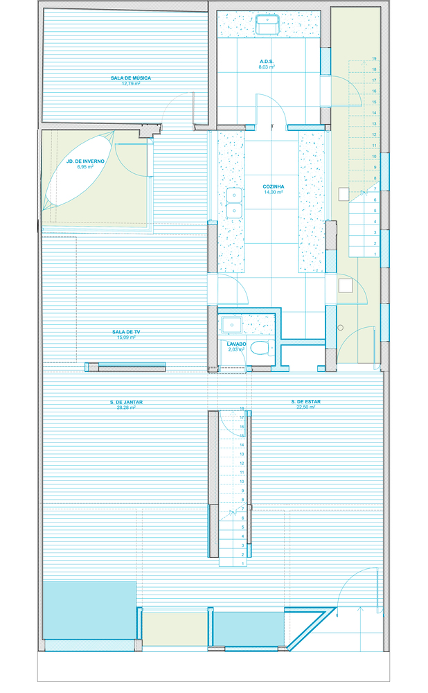 The ceilings, especially in the social area and the studio/playroom, ceased to be mere finishes and began to define the space.