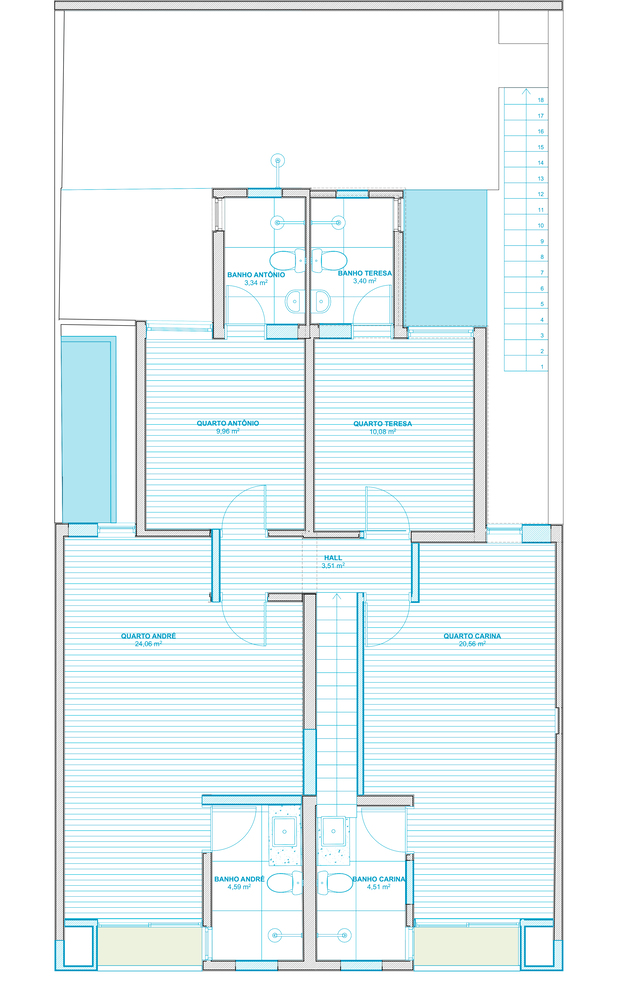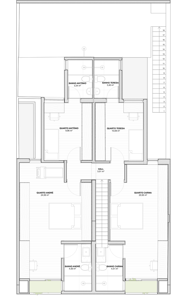 Upon taking on the project and construction of the Village House, we encountered a building formed by the joining of two semi-detached houses, "regularized" by a superficial intervention that did not address the essential issues of the space.