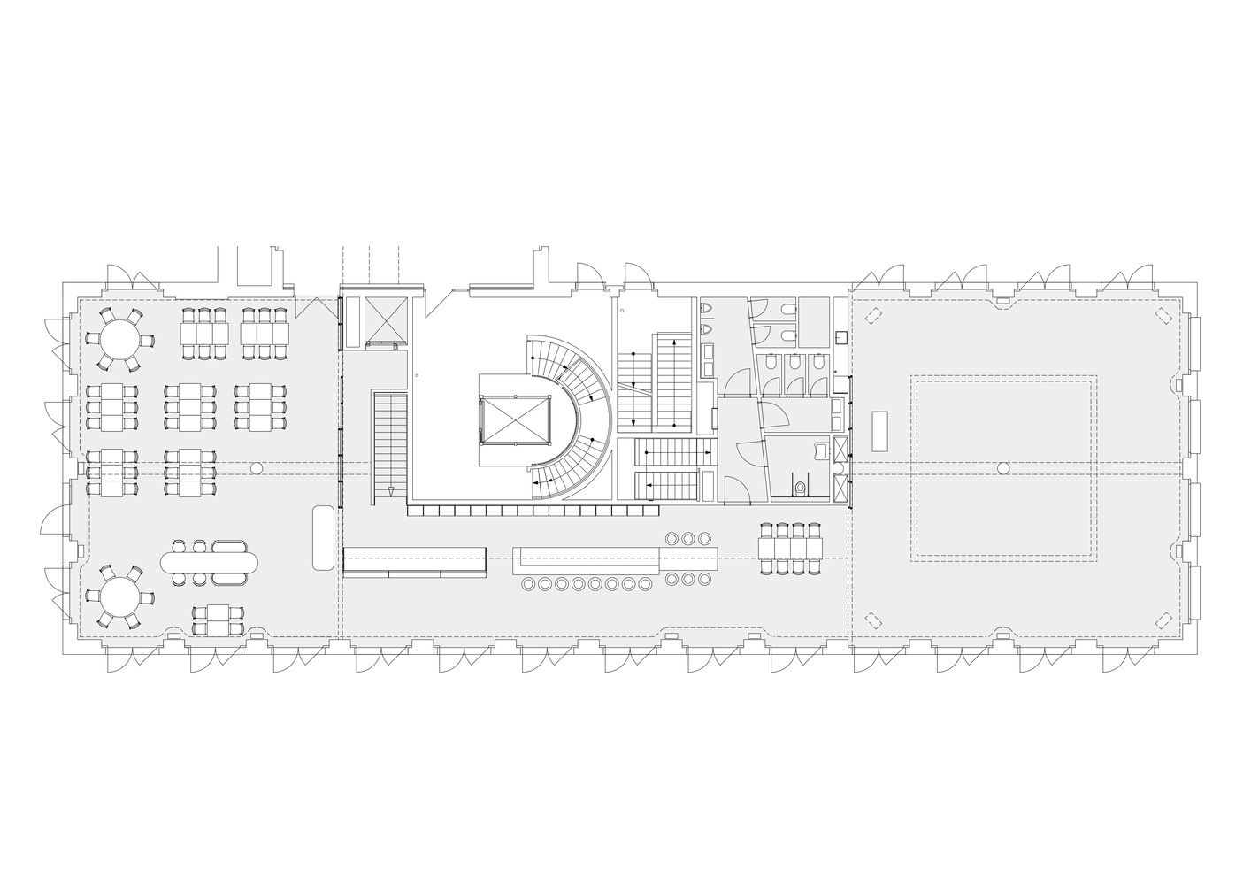 This 400-square-meter space is a dynamic environment that easily transforms from a campus canteen during the day to a corporate event location in the evening, meeting the varied needs of guests and the campus community.