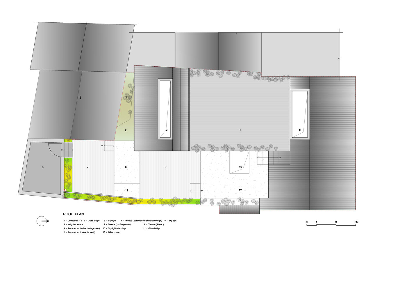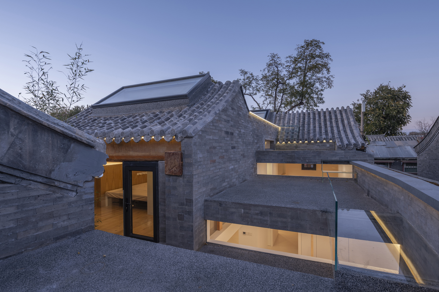The design adopts the concept of "borrowed scenery" by meticulously adjusting roof levels, addressing issues of light and spatial depth.