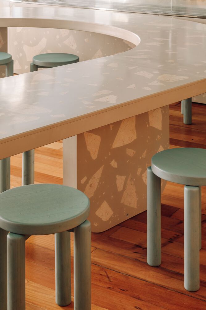 To emphasize the comunal table we choose stools as the way to experience it, giving more flexibility to the table occupation.