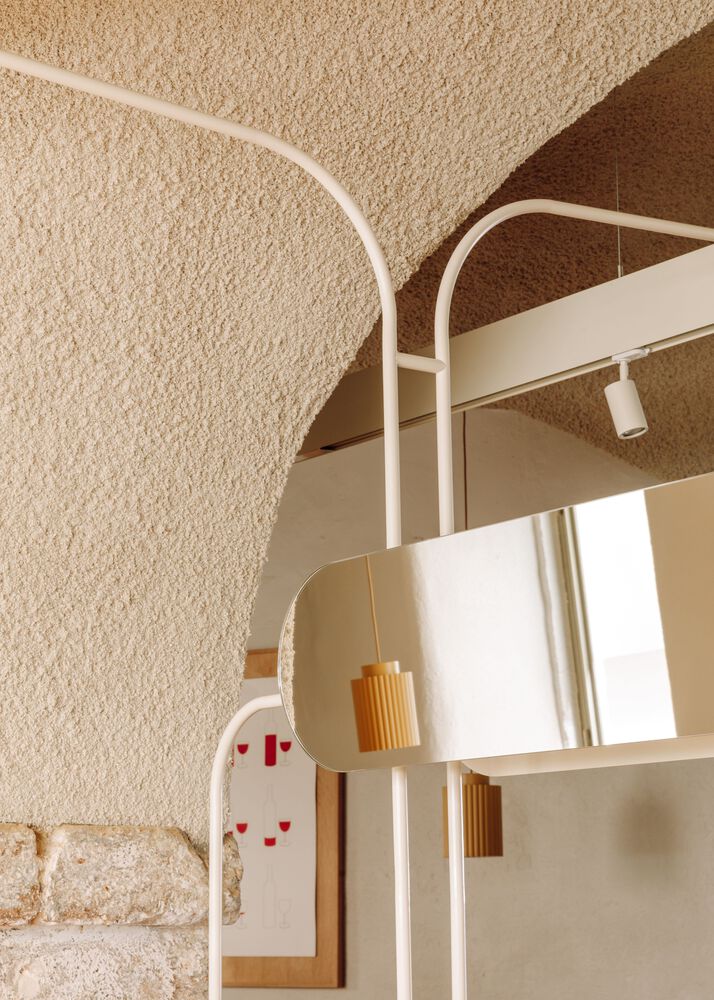 To improve the accoustic and to give an important texture to the space we used a projected insulation material a ecological product and ‘cradle to cradle’ certified, made from recycled cellulose fibers.